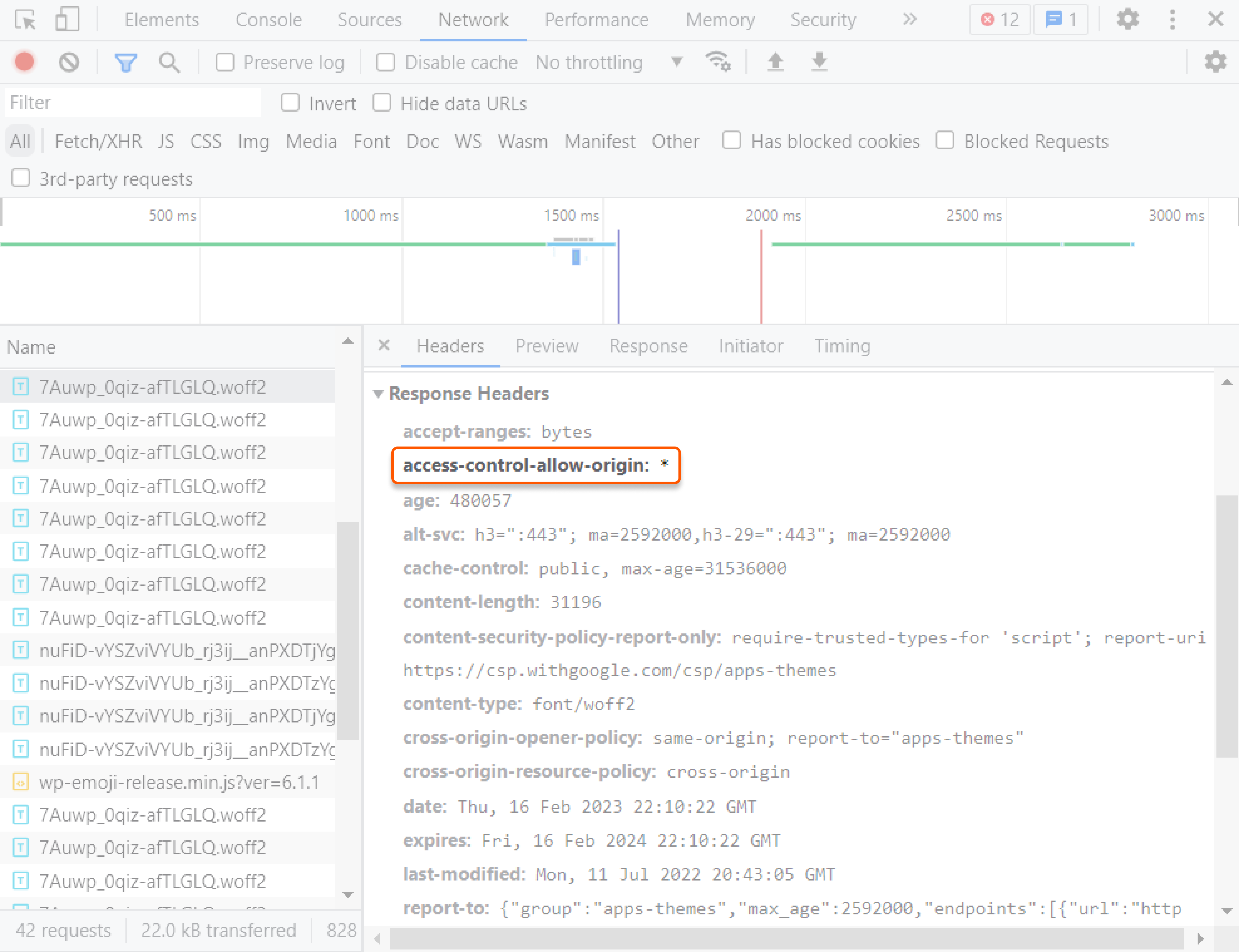 8. On the "Headers" tab on the right, you will see the headers configured on your server. If you see the Access-Control-Allow-Origin header, the configuration was successful.