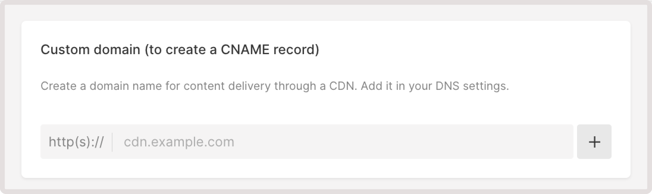 For example, if your website is yourwebsite.com, enter cdn.yourwebsite.com. You will use that CNAME later to rewrite URLs in your website's source to deliver those resources through CDN.