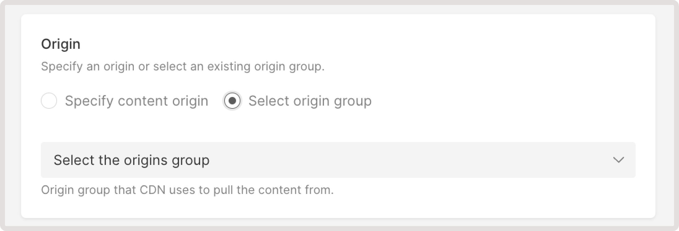 Specify content origin. Select this option if you haven't previously created an origin group. Follow our instructions to add an origin group (step 2).