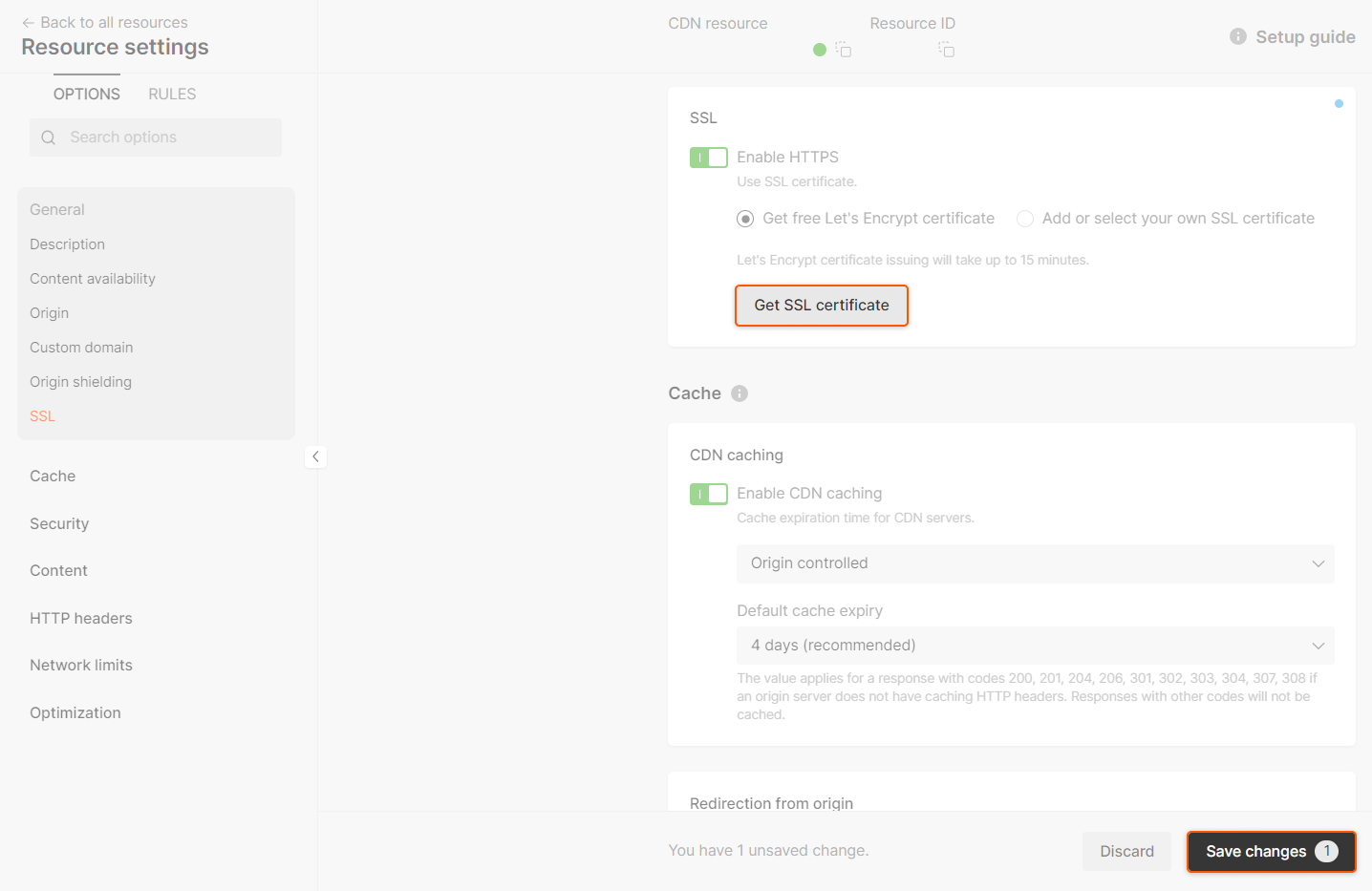- The time it takes to issue a certificate varies depending on when the CDN resource was created. If you are requesting a certificate for a recently created resource, it may take up to 30 minutes as the configuration has not yet been fully propagated to all CDN servers. However, if the resource's configuration has already been fully propagated, issuing a Let's Encrypt certificate will only take a few minutes.
