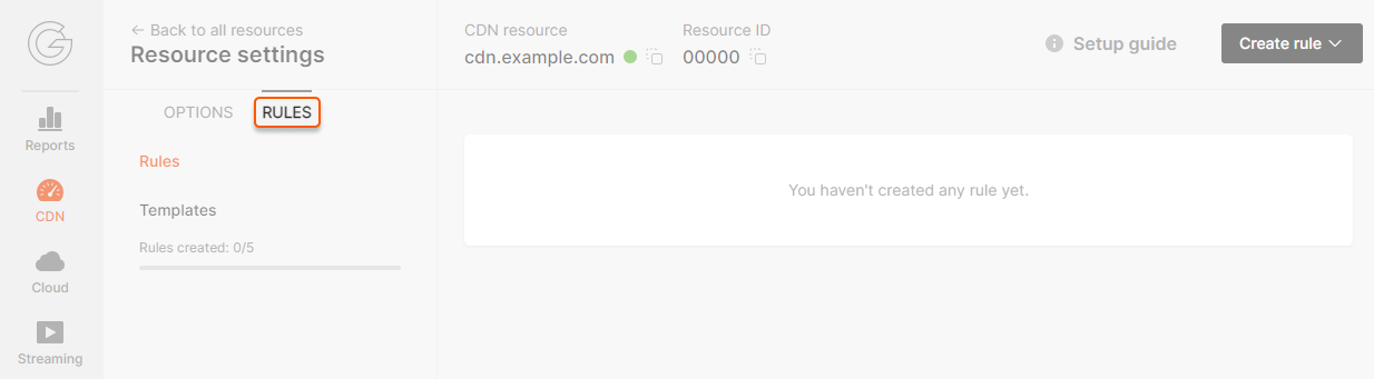 2. Go to the Resource settings and find the Rules section. If there are no rules, go to the next step.