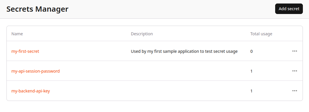 For more information regarding Secrets usage in applications see the JavaScript SDK and the Rust SDK
