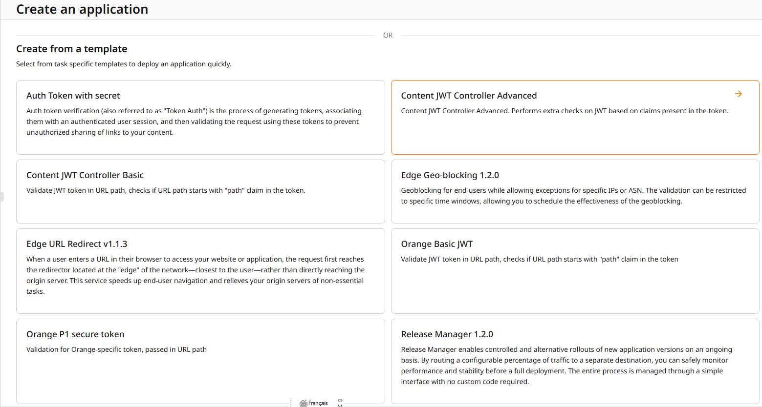 - In the Create from a Template section, click on Content JWT Controller Advanced.