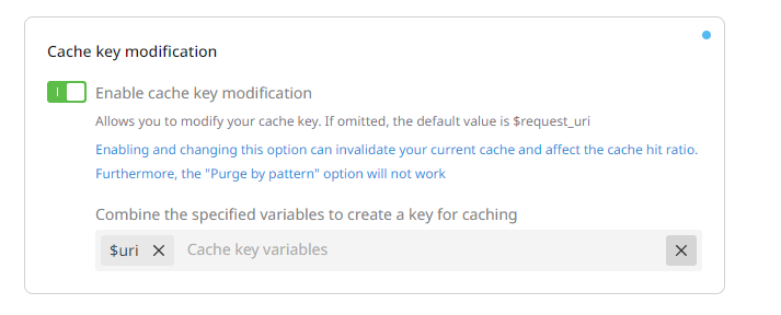 - The last configuration option consists of modifying the cache key to ensure the token is not part of it. Otherwise, the same object will be stored multiple times.