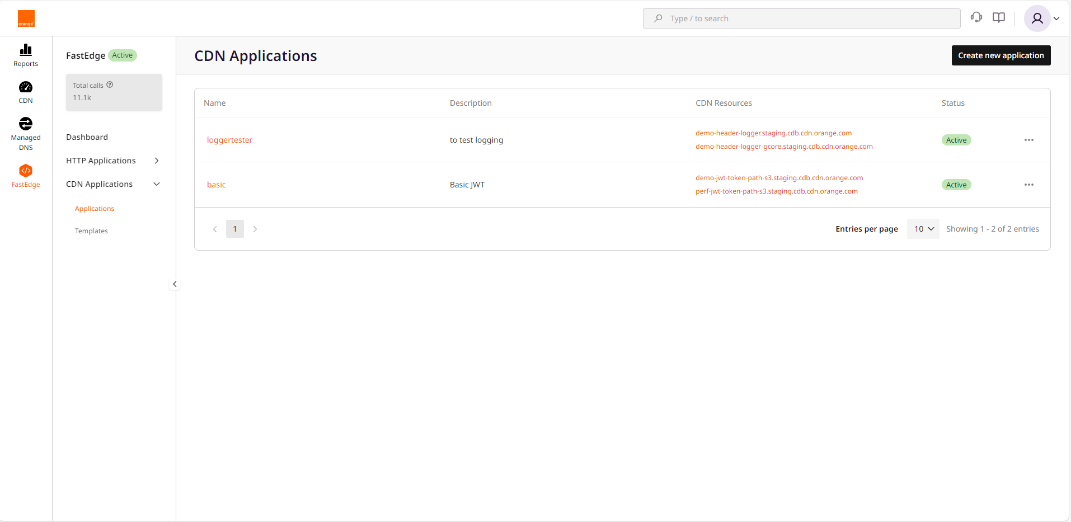- Click on the FastEdge icon on the left to switch to FastEdge management.