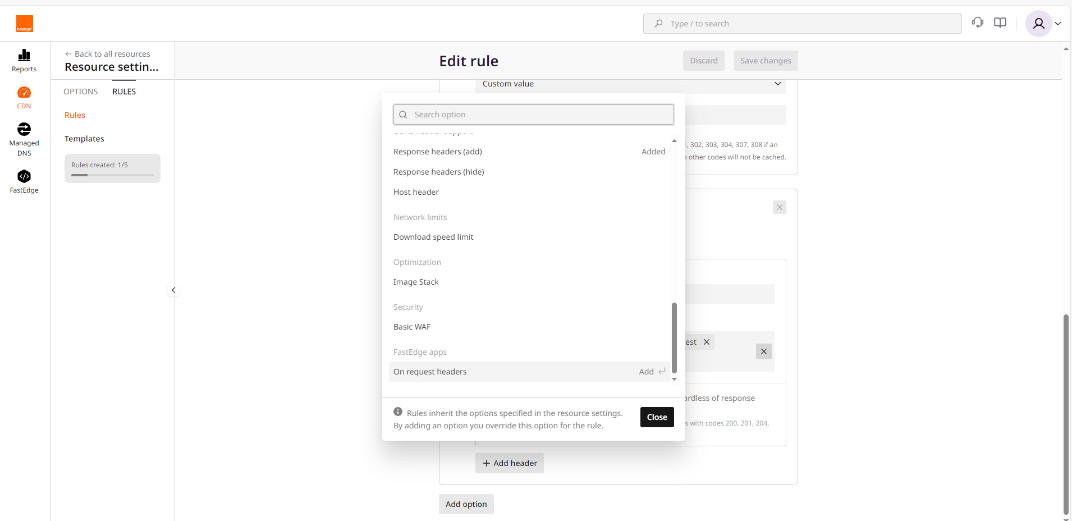 Note: Each modification on the CDN side requires 10-15 minutes to propagate.