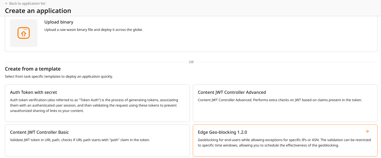 Select your geoblocking application from then drop down list displayed by clicking Fastedge application If the Orgin Shielding on your CDN Resource uncheck the Option 'Invoke FastEdge app on shield'.