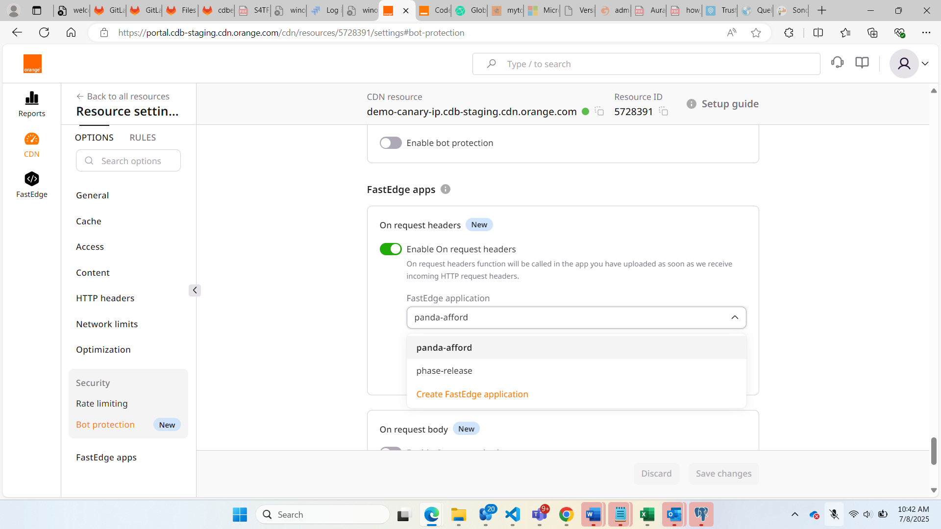- Link your CDN resource to your FastEdge application. (seee picture below).