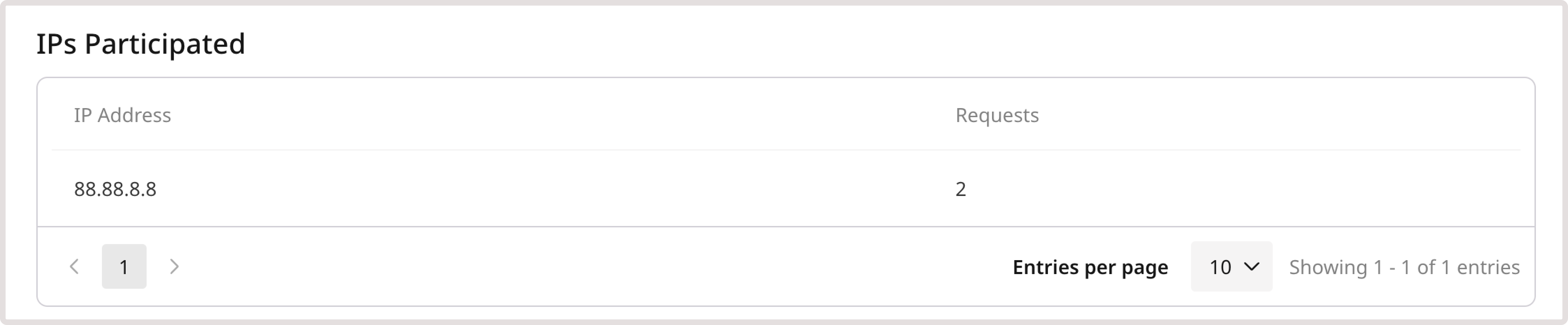 This table displays a list of the top IP addresses associated with the selected DDoS attack, along with the total number of times each IP has made a request to your domain.