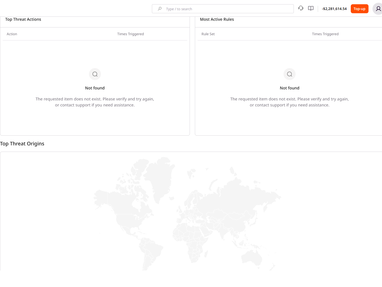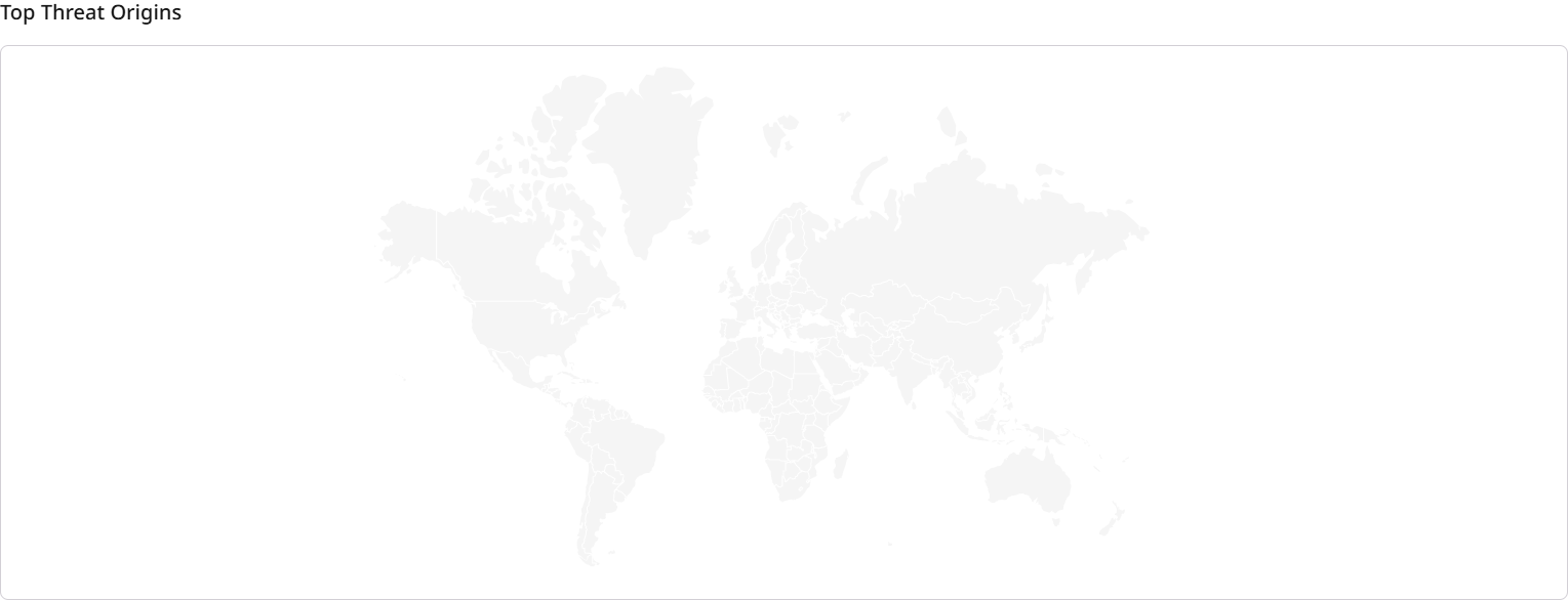 This map and table display the origin location of bad requests (threats) from the last 24 hours. You can view the country from which requests are coming and the total number of requests for that country.