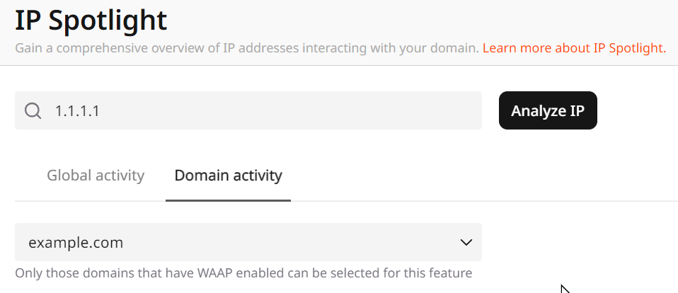 The IP Spotlight feature is available on the Enterprise plan. To enable it for your domain, contact our sales team.