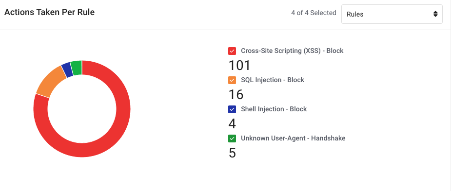 This section displays a graph with the number of blocked requests that are filtered by the triggered WAF policy.